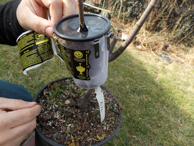 Check progress every week or so and keep the reservoirs topped up with water as necessary. When you see roots have formed, you can cut completely through the stem below the Rooter-Pot and transplant your new specimen into a larger pot.